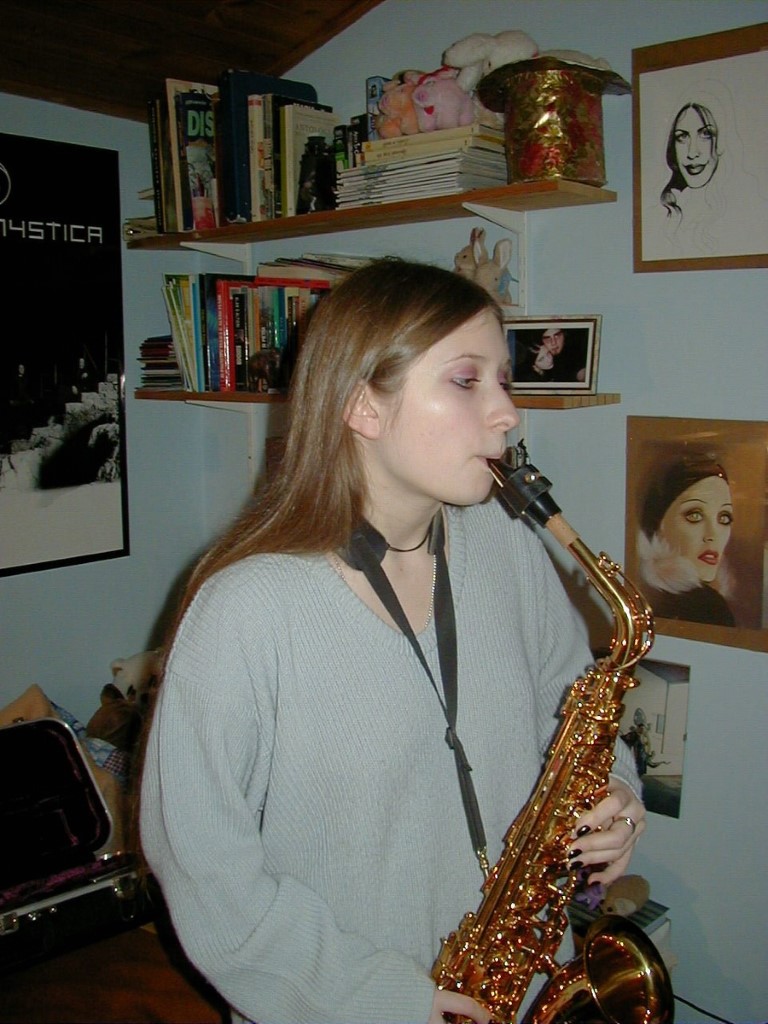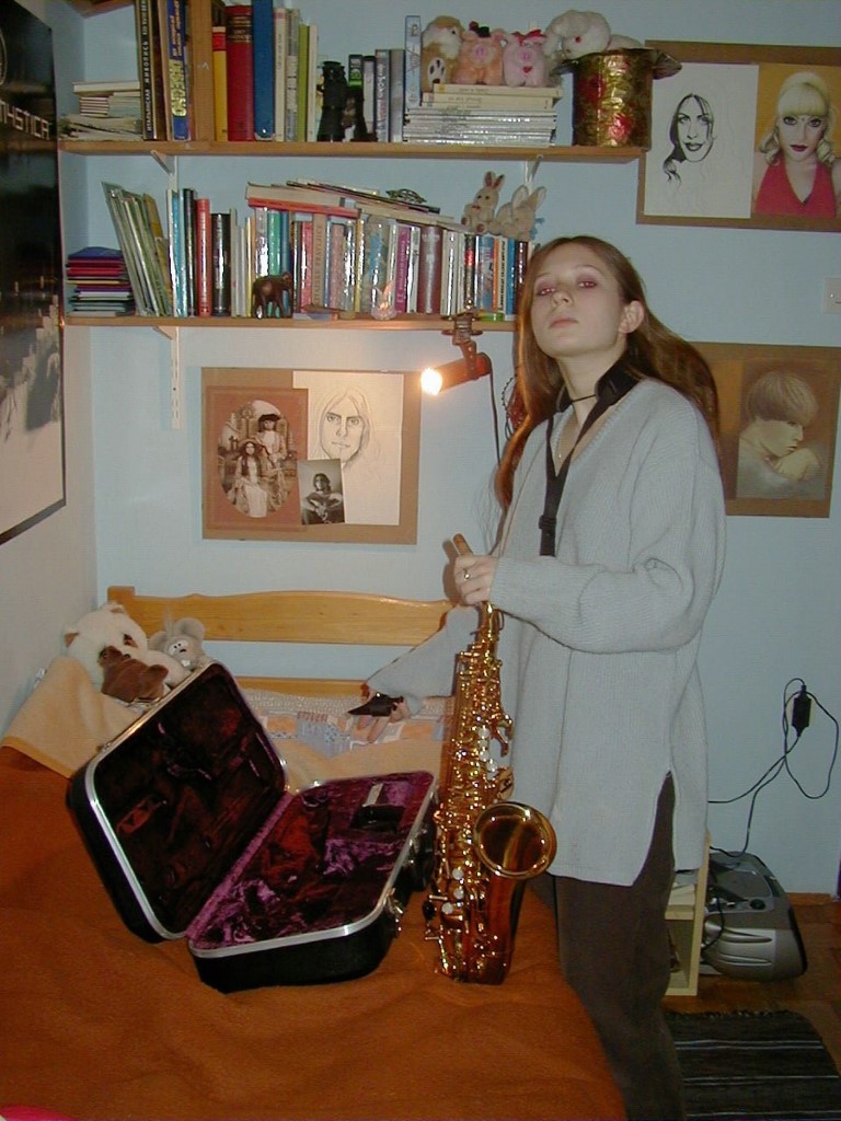 Amatőr szexképek – Természetes módon szőrösen hagyja a punciját a szaxofonon játszó tini barátnő. A meztelen és harisnyás fotók mellett igazi amatőr házipornót is vállal, baszás és szopás képeket.